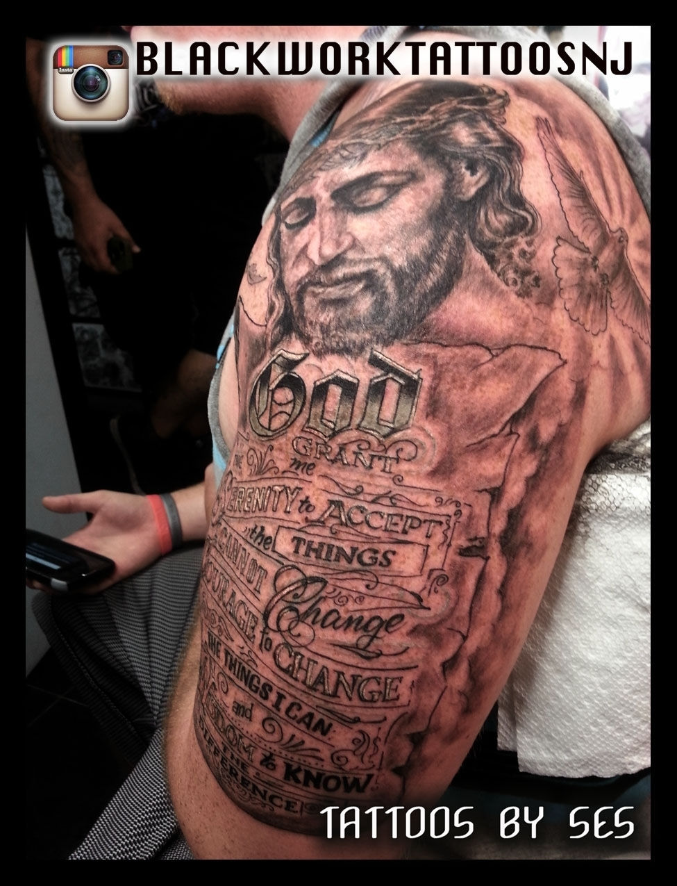 A collection of tattoos featuring religious and symbolic imagery, each tattoo carrying deep meaning and significance. From praying hands to intricate religious symbols they represent the spiritual and symbolic aspects of tattoo art by Ses.